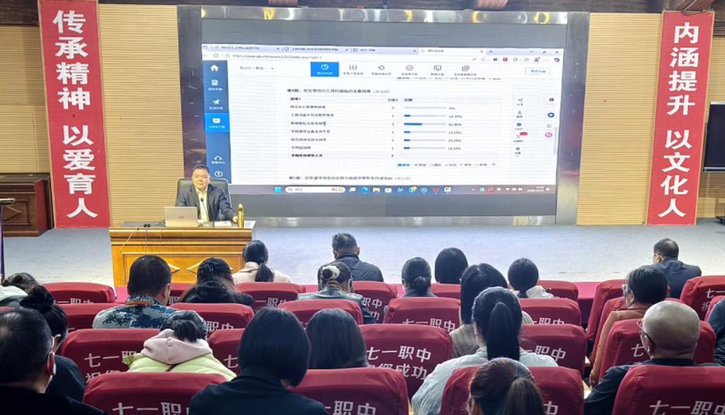 綿陽新聞網(wǎng)訊 為了積極響應教育數(shù)字化轉(zhuǎn)型號召,切實提升教師人工智能應用能力與信息素養(yǎng),10 月23 日,北川羌族自治縣“七一”職業(yè)中學特邀綿陽職業(yè)技術學院馮德勇副教授,為全校教師帶來《AI教師生產(chǎn)力倍增計劃:60分鐘極速破局》的專題講座,以 “理論+實操” 的沉浸式培訓,助力教師解鎖人機協(xié)同教學新范式。