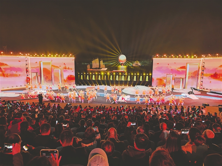 此次活動的舞臺設計堪稱一大亮點。超1000平方米的水上舞臺融入了LED屏幕、激光投影、AI、機械裝置、無人機等多種技術手段,為觀眾打造了一場全新的視聽盛宴。