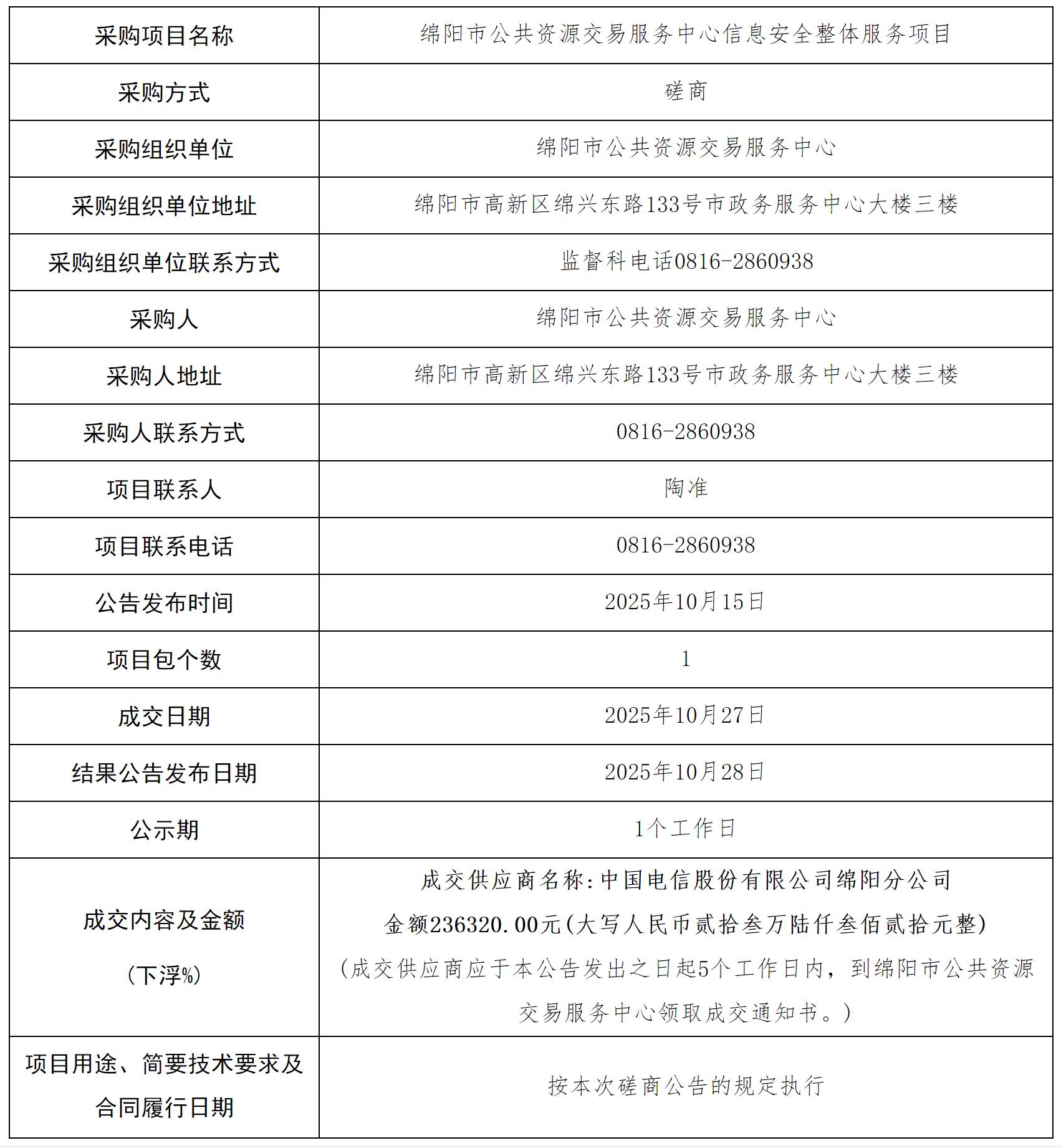 綿陽市公共資源交易服務(wù)中心關(guān)于“信息安全整體服務(wù)”項目采購結(jié)果的公告