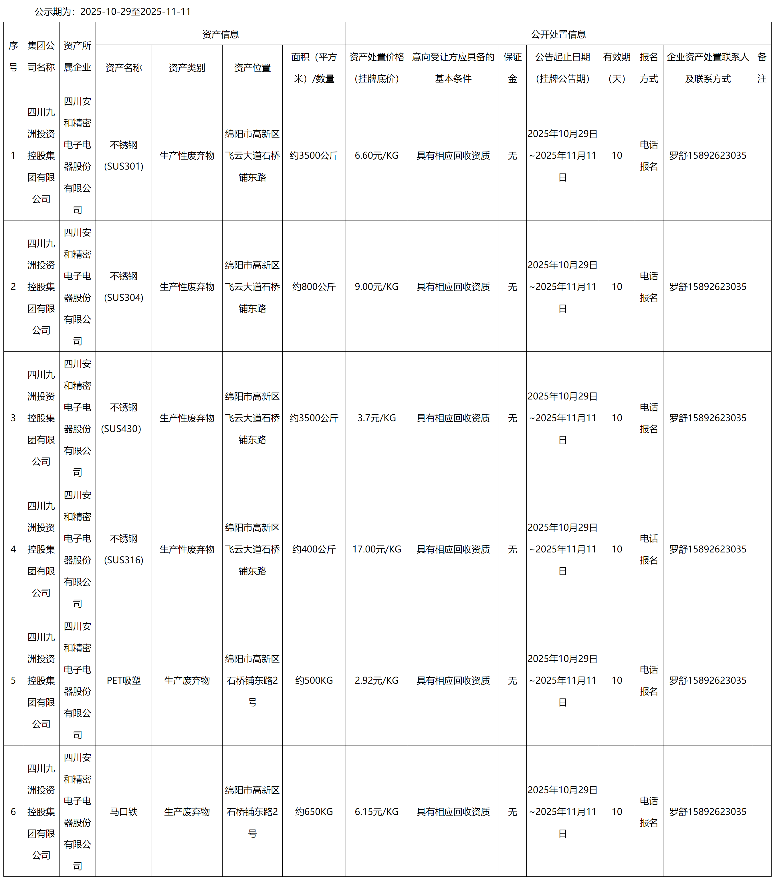 四川安和精密電子電器股份有限公司資產(chǎn)處置公告