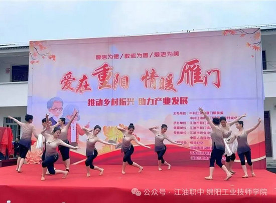 活動(dòng)中,雁門關(guān)村民與江油職中師生同臺(tái)獻(xiàn)藝,16個(gè)節(jié)目依次上演。江油職中師生精心準(zhǔn)備的兩個(gè)節(jié)目成為全場(chǎng)亮點(diǎn)——24級(jí)舞蹈班11名同學(xué)以精湛舞技演繹古典舞《寒依疏影》,展現(xiàn)傳統(tǒng)文化韻味;23級(jí)舞蹈班3名同學(xué)則以充滿活力的《風(fēng)吟民族》傳遞民族風(fēng)情。同學(xué)們用舞姿傳遞敬意,以青春感染銀齡,展現(xiàn)出職教學(xué)生不僅技能扎實(shí),更懷揣社會(huì)責(zé)任與感恩之心。節(jié)目贏得了全場(chǎng)陣陣掌聲,場(chǎng)面溫馨動(dòng)人。
