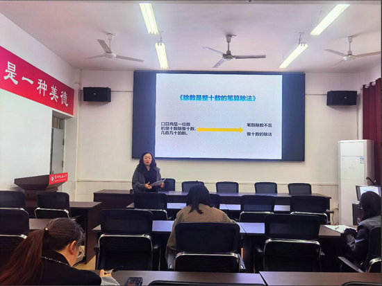 說課環(huán)節(jié)結(jié)束后,進入集中研討與點評環(huán)節(jié)。全體教師圍繞兩節(jié)說課內(nèi)容,聚焦“算理與算法的有機融合”“幾何圖形教學(xué)中思想方法的滲透”等關(guān)鍵問題展開深入交流,在場教師均有所悟、有所獲。