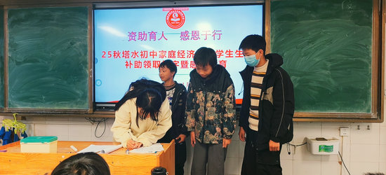 綿陽新聞網(wǎng)訊 11月6日中午,安州區(qū)塔水鎮(zhèn)初級(jí)中學(xué)舉行了以“冬日暖陽照校園,資助感恩潤(rùn)心田”為主題的2025年秋學(xué)生生活補(bǔ)助領(lǐng)取簽字儀式暨“資助育人,感恩于行”主題班會(huì)活動(dòng)。