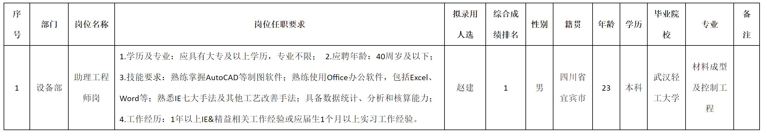 根據(jù)四川九華光子通信技術(shù)有限公司發(fā)布的招聘公告及招聘相關(guān)規(guī)定,經(jīng)測(cè)試、考察、體檢等程序,擬錄用趙建同志到四川九華光子通信技術(shù)有限公司工作,現(xiàn)予以公示,具體情況如下: