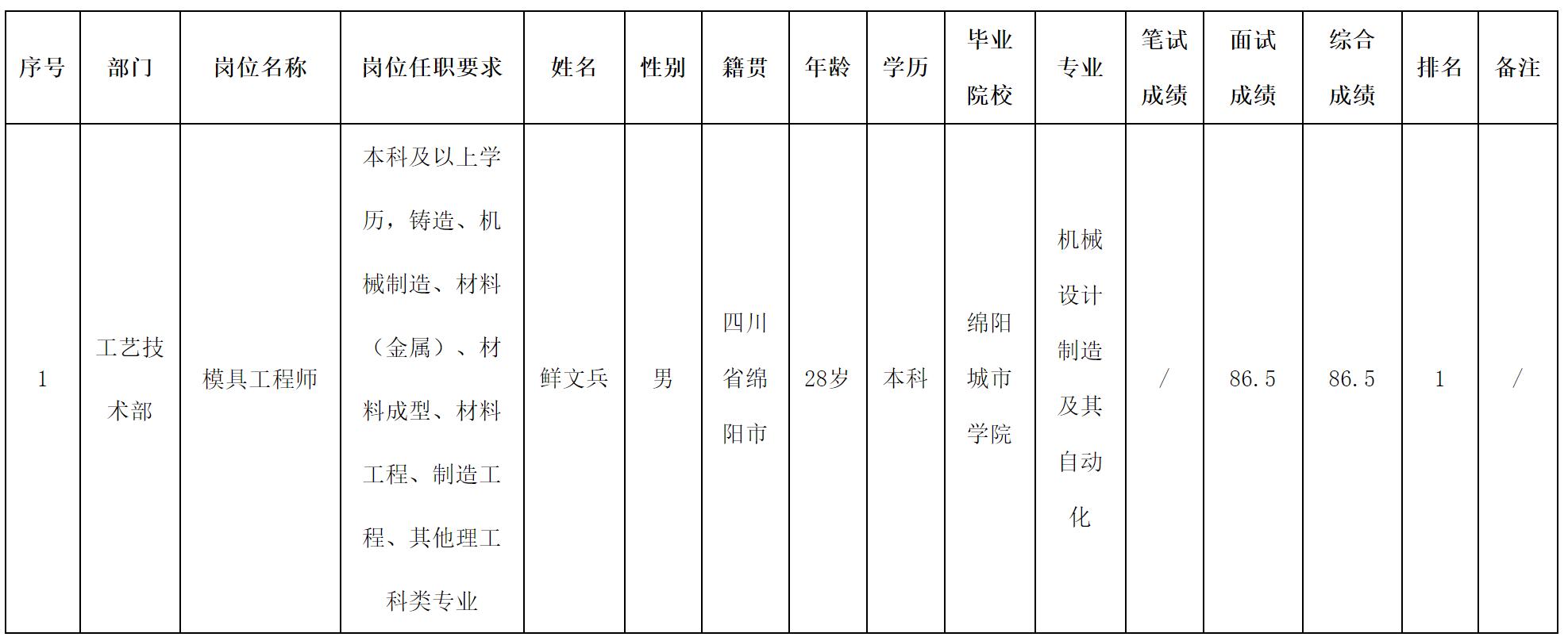 根據(jù)四川波鴻實(shí)業(yè)有限公司發(fā)布的招聘公告及招聘相關(guān)規(guī)定,現(xiàn)將測(cè)試成績(jī)予以公示。
