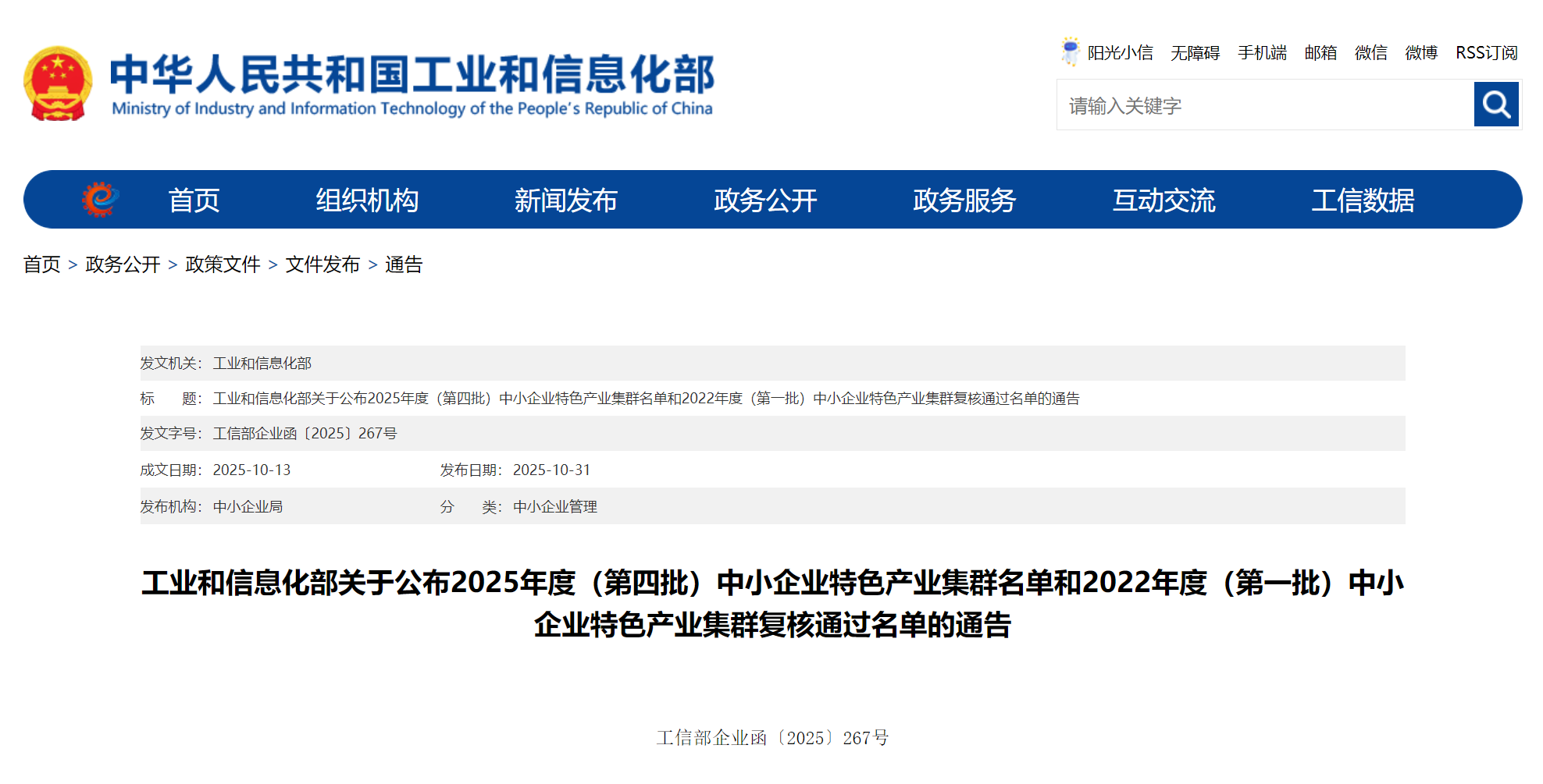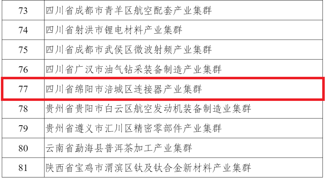 近日,工信部公布了2025年度(第四批)中小企業(yè)特色產(chǎn)業(yè)集群名單和2022年度(第一批)中小企業(yè)特色產(chǎn)業(yè)集群復(fù)核通過(guò)名單,我市涪城區(qū)特種環(huán)境作業(yè)機(jī)器人產(chǎn)業(yè)集群入選,涪城區(qū)連接器產(chǎn)業(yè)集群復(fù)核通過(guò)。至此,我市已累計(jì)培育4個(gè)國(guó)家級(jí)中小企業(yè)特色產(chǎn)業(yè)集群。
