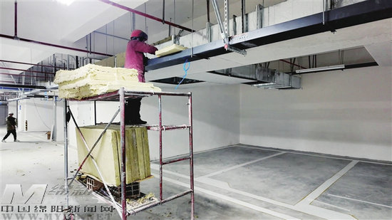 安州區(qū)智慧停車場及配套建設項目現(xiàn)場,工人正在安裝防火包裹。