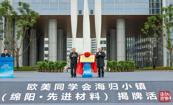 上午10時(shí)40分許,丁仲禮、普布頓珠共同為歐美同學(xué)會(huì)海歸小鎮(zhèn)(綿陽(yáng)·先進(jìn)材料)揭牌。
