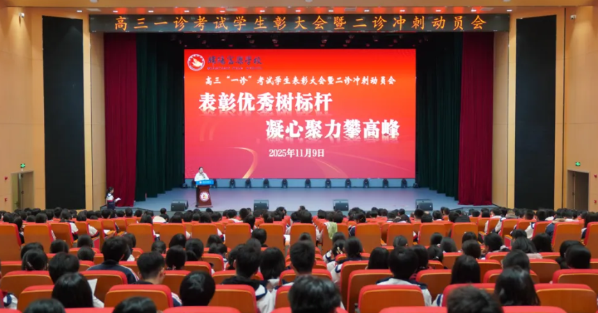 綿陽(yáng)新聞網(wǎng)訊 為了表彰先進(jìn)樹(shù)立典范,激揚(yáng)斗志砥礪前行,11月9日,綿陽(yáng)富樂(lè)學(xué)校高中部在演藝中心多功能廳舉行了以“表彰優(yōu)秀樹(shù)標(biāo)桿·凝心聚力攀高峰”為主題的2025年秋高2023級(jí)一診表彰大會(huì)暨二診沖刺動(dòng)員會(huì)。高中部行政、全體高三班主任與高三學(xué)子齊聚會(huì)場(chǎng),共赴這場(chǎng)榮譽(yù)與奮進(jìn)的青春之約。
