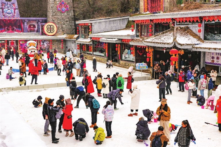 游客在北川景區(qū)體驗冰雪主題活動。記者 唐舒琪 唐云峰 攝