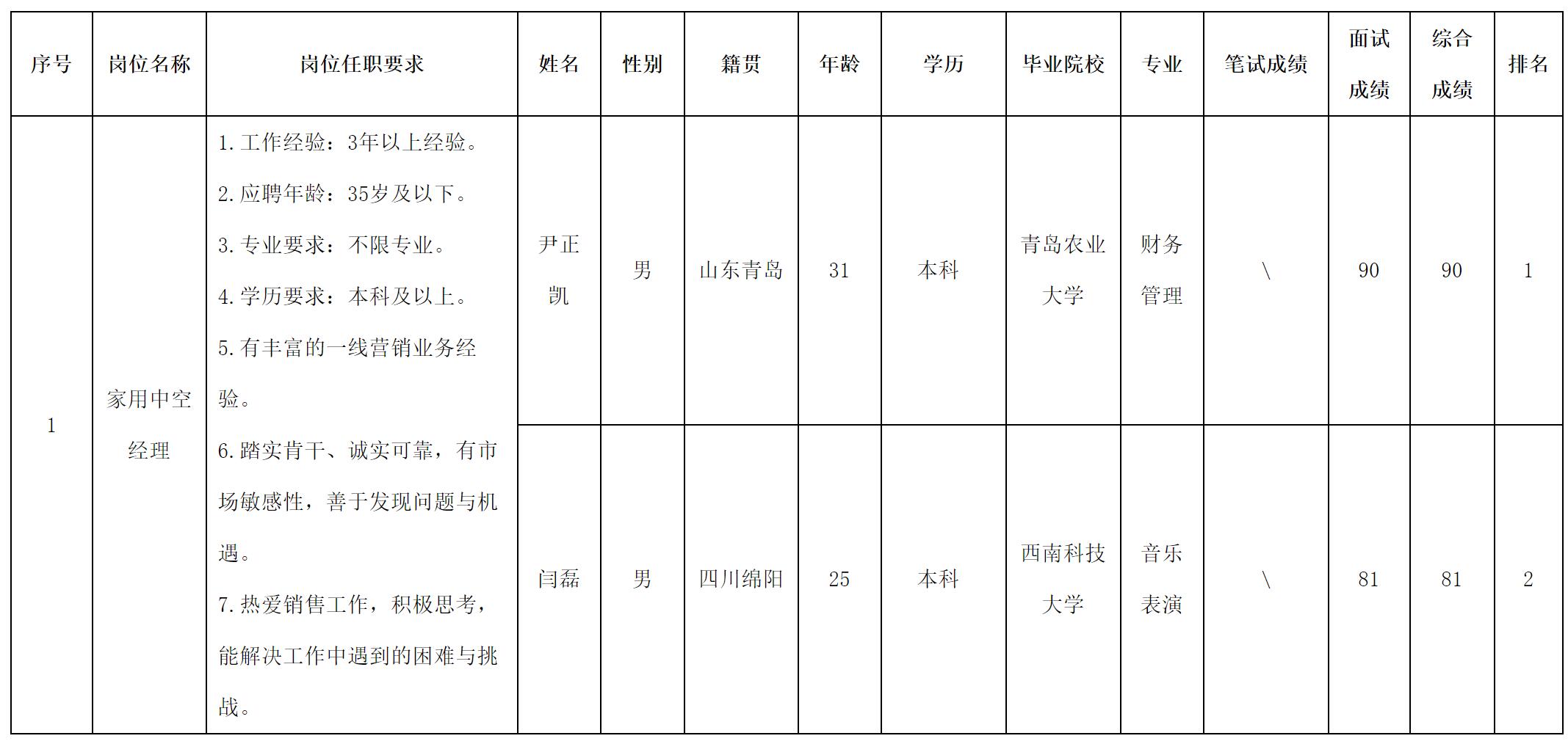 根據(jù)長虹·美菱中國區(qū)營銷總部發(fā)布的招聘公告及招聘相關規(guī)定,現(xiàn)將測試成績予以公示。