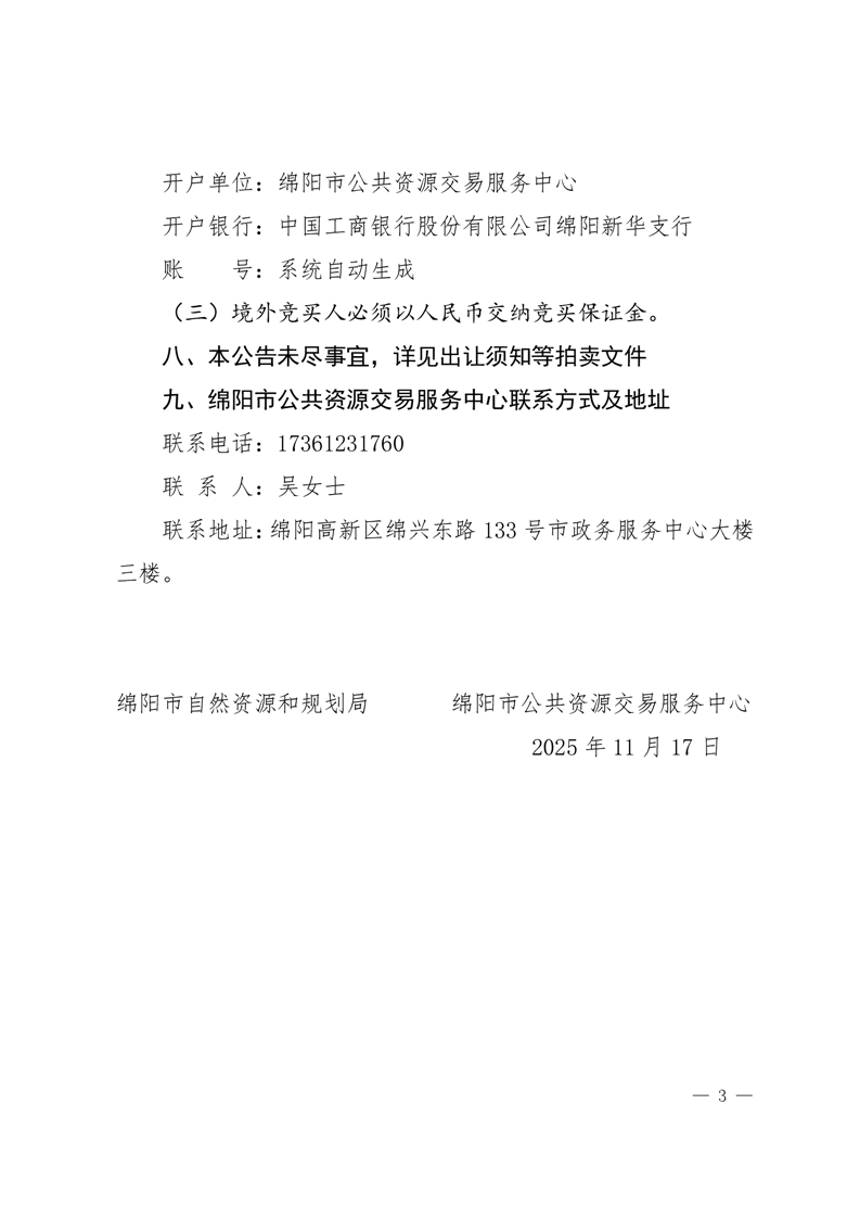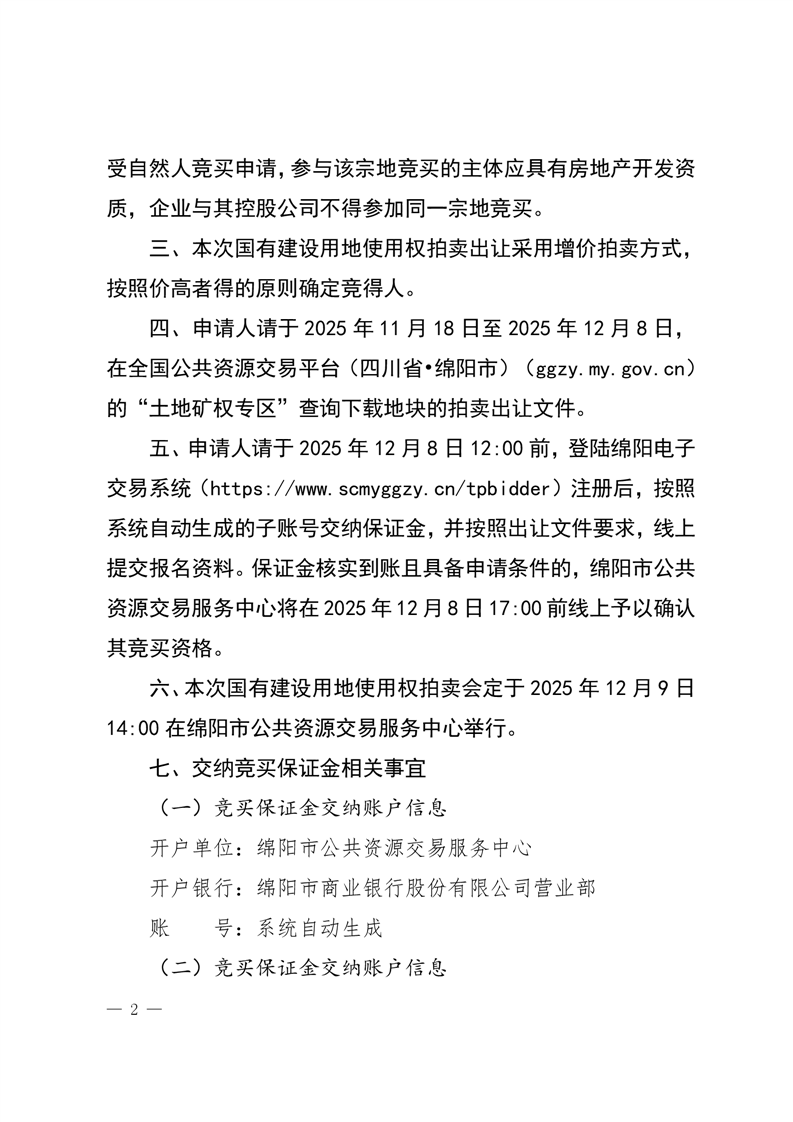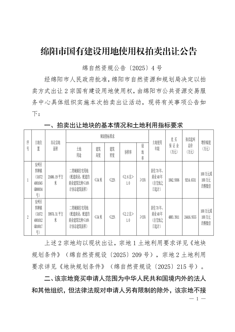 綿陽(yáng)市國(guó)有建設(shè)用地使用權(quán)拍賣出讓公告(綿自然資規(guī)公告〔2025〕4號(hào))