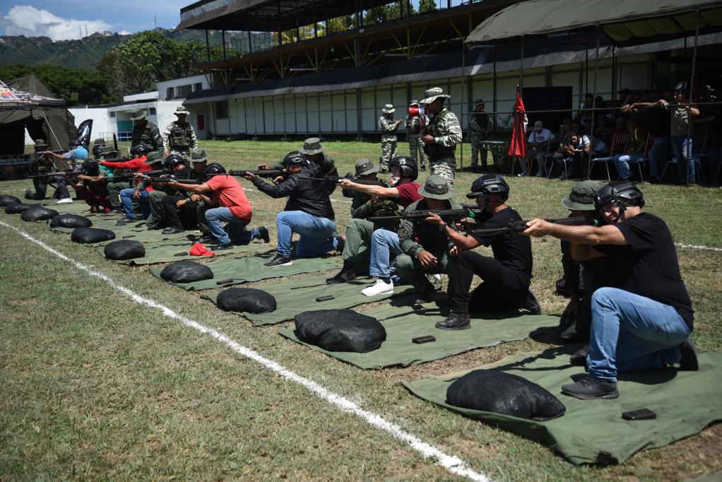 9月13日,委內(nèi)瑞拉民兵在位于首都加拉加斯的蒂烏納堡陸軍基地進行射擊訓(xùn)練。新華社發(fā)(薩爾戈多攝)