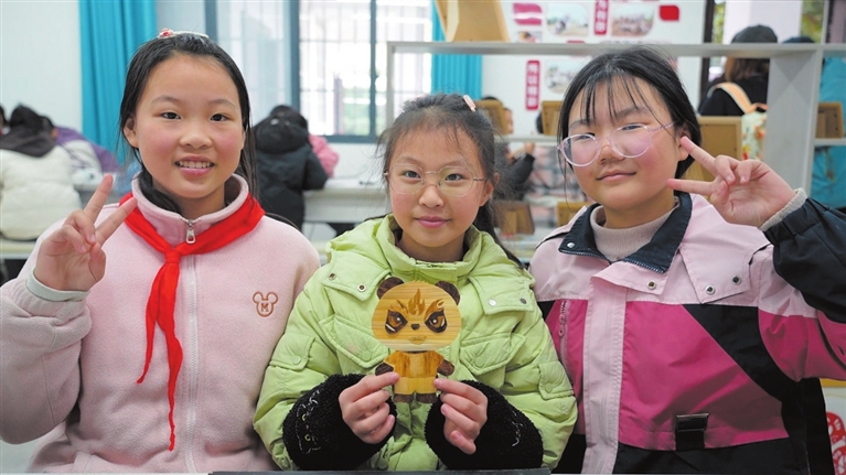 “足球是拼搏精神的象征,麥稈烙畫是匠心傳承的載體。”龍怡珍一邊指導(dǎo)學生調(diào)整烙鐵溫度,一邊說,兩者結(jié)合既能讓孩子們感受非遺的魅力,也能為家鄉(xiāng)球隊注入獨特的文化底蘊,“這一次帶著孩子們制作川超吉祥物烙畫,就是想以傳統(tǒng)技藝為川超加油,為綿陽助威。”五年級學生楊沁依的案前,一幅烙畫已見雛形:麥稈拼接成的足球旁,“超哥”揮臂奔跑。“我一直通過電視關(guān)注綿陽九洲長虹隊的每一場比賽,哥哥們表現(xiàn)得很棒,我為他們感到驕傲和自豪。”她低頭調(diào)整烙鐵角度,小心翼翼地給“超哥”的球衣添上細節(jié),“這次我想通過自己喜歡和擅長的麥稈烙畫,制作一幅作品為他們加油,希望他們一往無前,在賽場上拼搏出更好的成績。”
