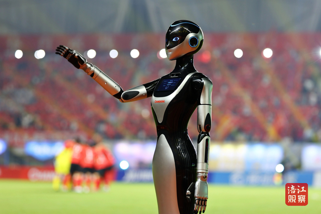川超首個(gè)主場(chǎng)開球儀式,當(dāng)無人駕駛公交車穩(wěn)穩(wěn)駛來,長虹機(jī)器人靈活互動(dòng),“機(jī)器狼”邁著矯健的步伐驚艷亮相——這些本土科研成果實(shí)現(xiàn)“從實(shí)驗(yàn)室到賽場(chǎng)”的場(chǎng)景轉(zhuǎn)化,讓觀眾近距離感受科技的魅力;