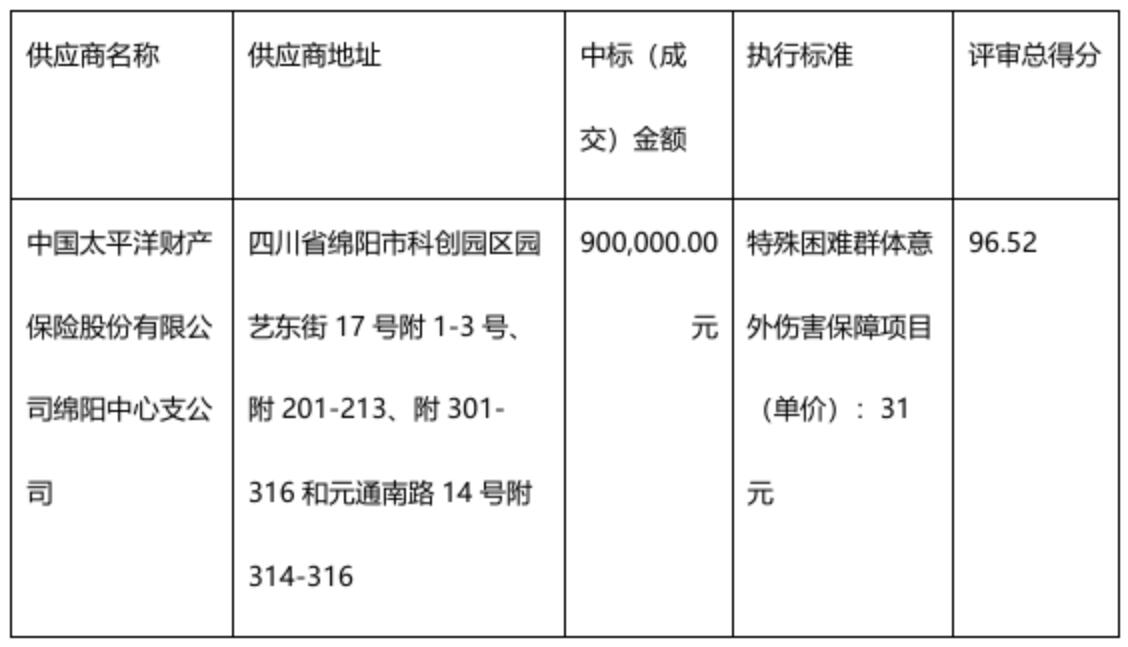 服務類(中國太平洋財產(chǎn)保險股份有限公司綿陽中心支公司)