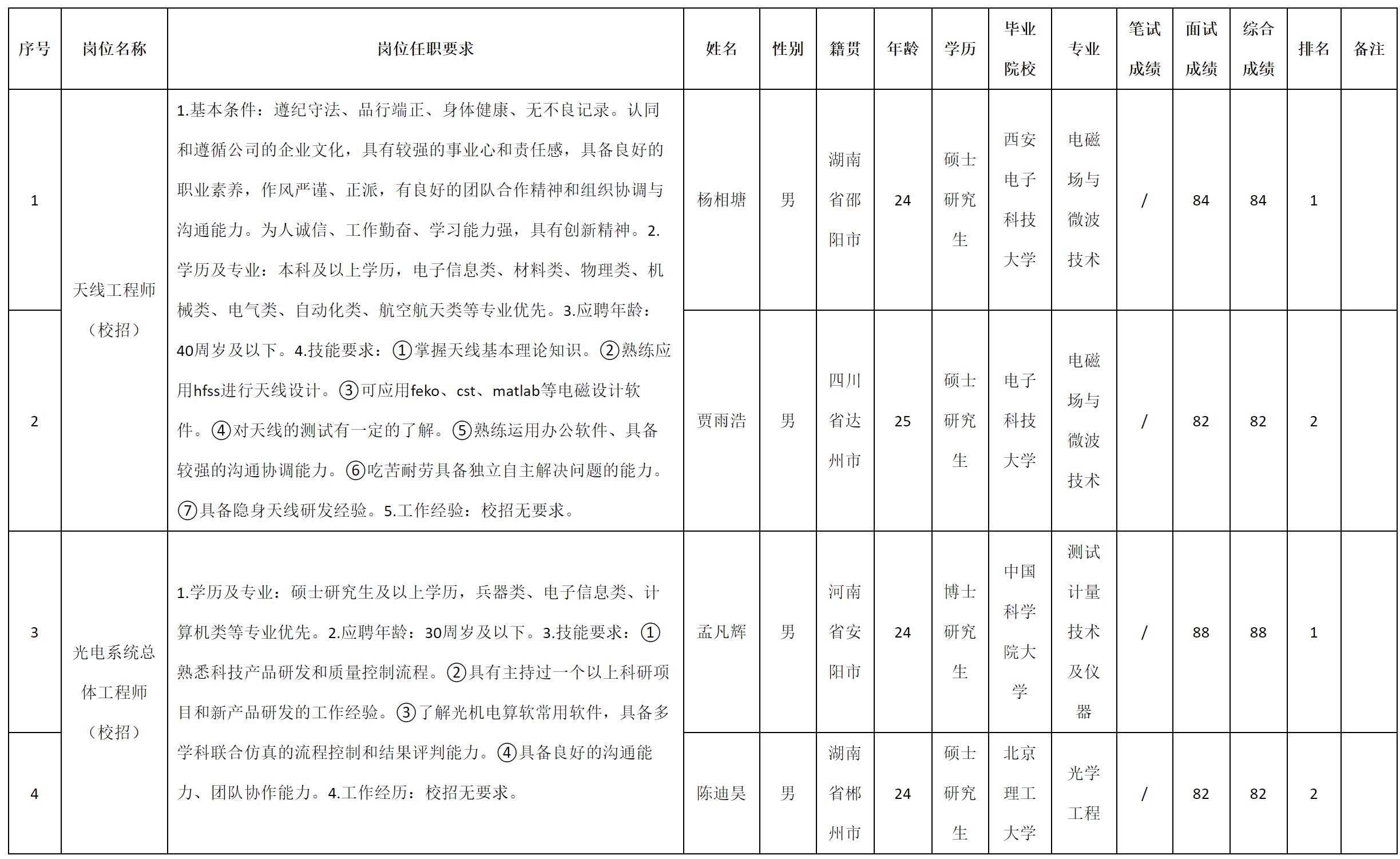 根據(jù)四川九洲電器集團(tuán)有限責(zé)任公司發(fā)布的招聘公告及招聘相關(guān)規(guī)定,現(xiàn)將測(cè)試成績(jī)予以公示。