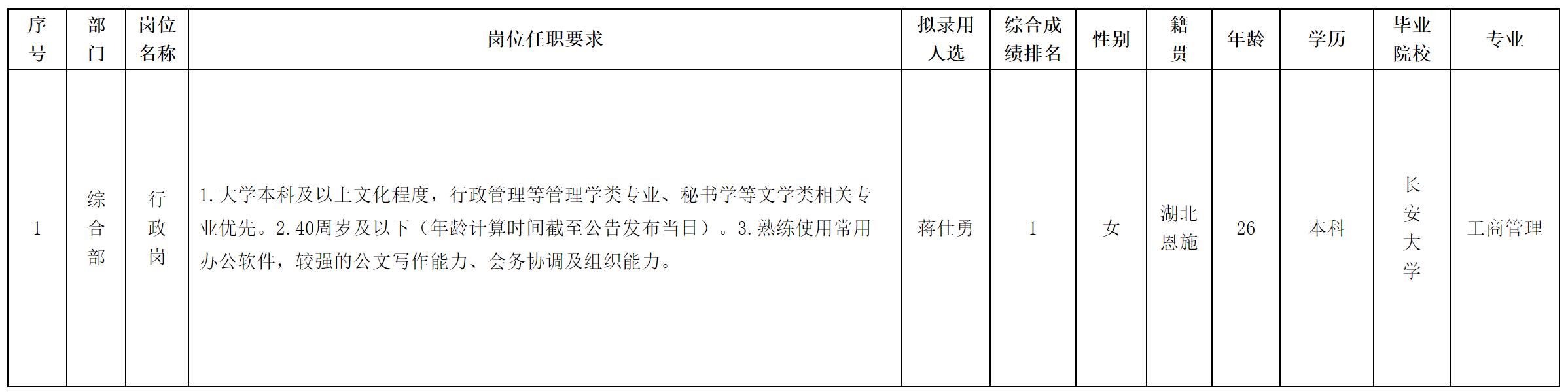根據四川越王樓文化傳播有限公司發(fā)布的招聘公告及招聘相關規(guī)定,經筆試、面試、考察、體檢等程序,擬錄用蔣仕勇同志到越王樓公司工作,現予以公示,具體情況如下:
