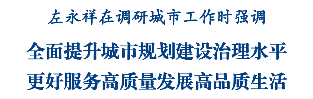 11月25日,省委常委、市委書記左永祥調(diào)研城市工作。他強調(diào),要深入學(xué)習(xí)貫徹習(xí)近平總書記關(guān)于城市工作的重要論述和對四川工作系列重要指示精神,全面落實黨中央、國務(wù)院和省委、省政府部署要求,緊緊圍繞建設(shè)創(chuàng)新、宜居、美麗、韌性、文明、智慧的現(xiàn)代化人民城市目標(biāo),堅持走內(nèi)涵式發(fā)展路子,全面提升城市規(guī)劃建設(shè)治理水平,更好服務(wù)高質(zhì)量發(fā)展高品質(zhì)生活。