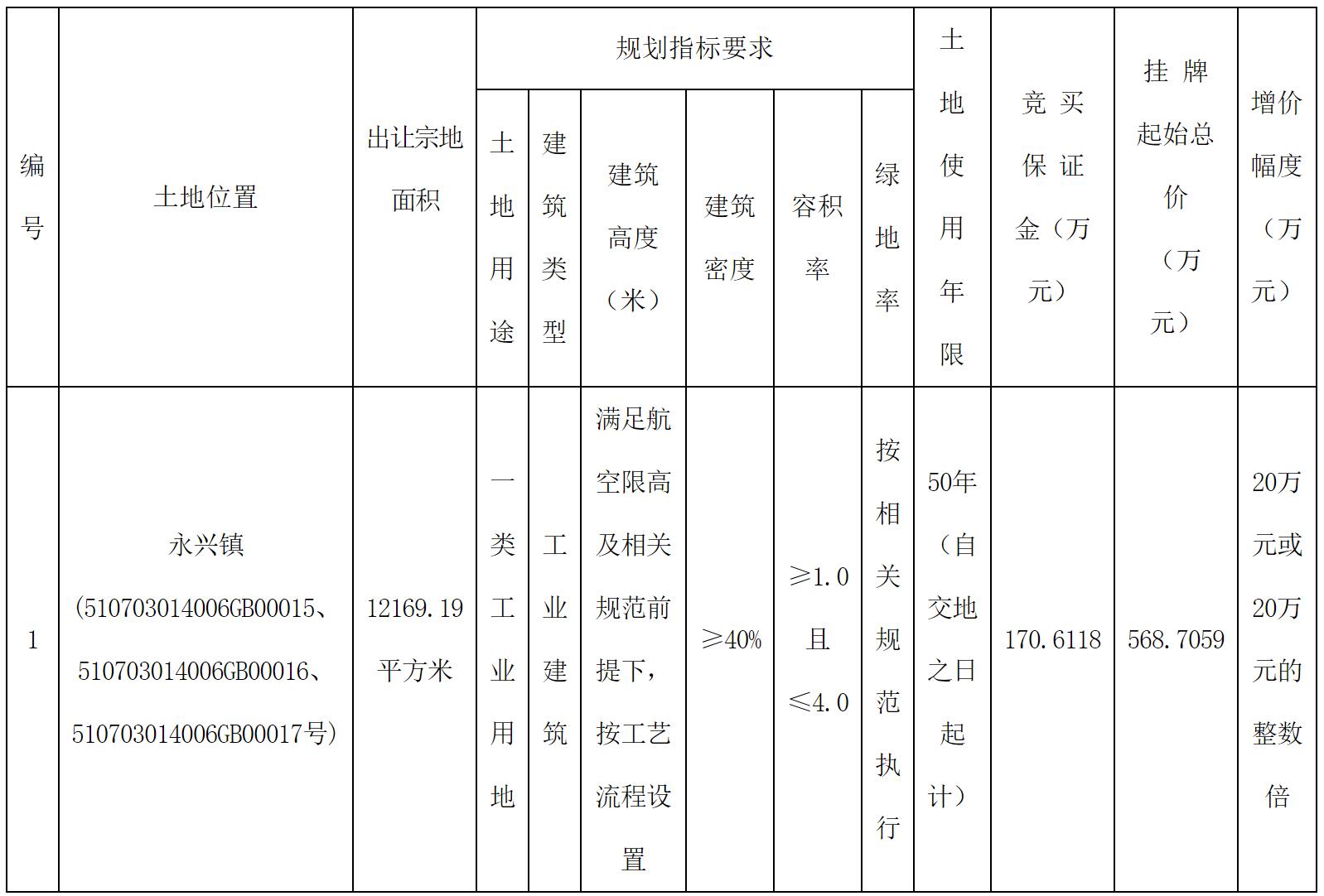 六、本次國有建設(shè)用地使用權(quán)掛牌地點(diǎn)為綿陽市公共資源交易服務(wù)中心。掛牌競價(jià)時(shí)間:2025年12月22日9:00至2025年12月31日16:00。