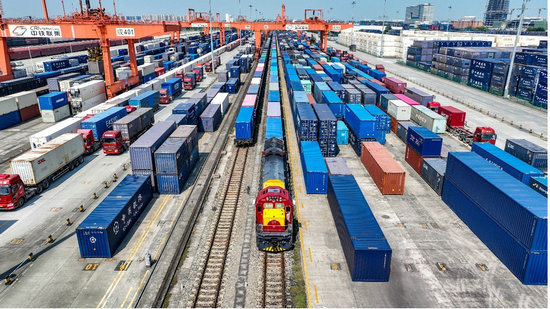 11月12日,一列滿載55個集裝箱的中歐班列從成都國際鐵路港鳴笛啟程。目前,成都國際班列境內(nèi)外輻射站點已達(dá)131個。