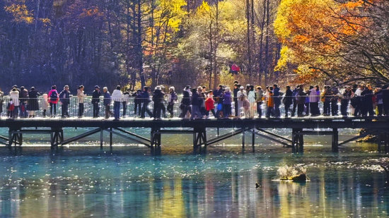 在高鐵、高速助力下,九寨溝景區(qū)年度游客人次不斷創(chuàng)新高,11月22日9時首次突破700萬人次大關(guān)。
