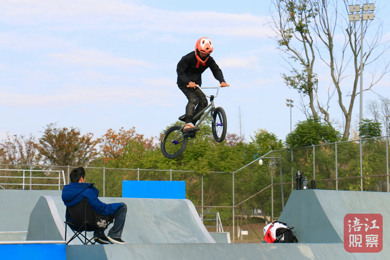 現(xiàn)場(chǎng)不少身著專業(yè)護(hù)具的小輪車運(yùn)動(dòng)員正熱火朝天地進(jìn)行日常訓(xùn)練,隨著車把靈活轉(zhuǎn)動(dòng),隊(duì)員們蹬車加速、順勢(shì)騰空,一連串轉(zhuǎn)體、轉(zhuǎn)把、空中擺尾的高難度動(dòng)作一氣呵成。