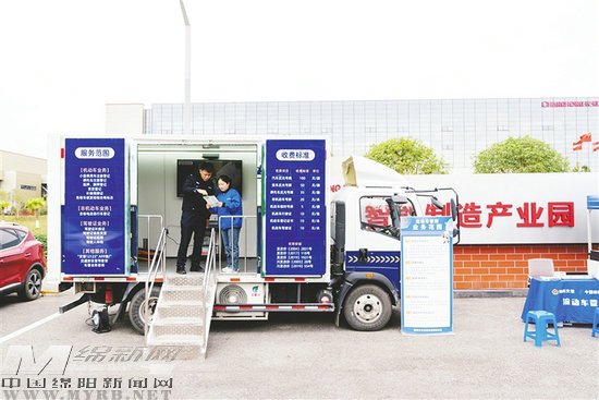 交管服務(wù)直通車在位于科技城新區(qū)永興鎮(zhèn)的產(chǎn)業(yè)園區(qū)為企業(yè)服務(wù)。記者 劉晏男 攝
