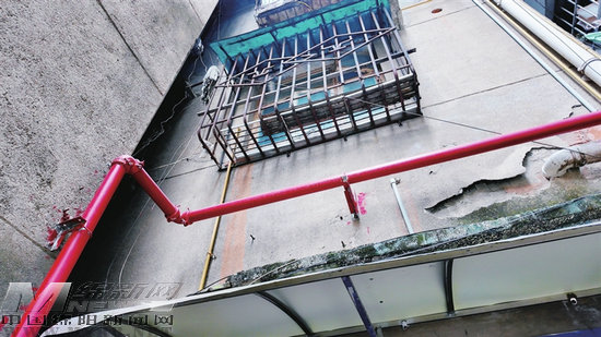 新鋪設(shè)的紅色消防管網(wǎng)。葛楚涵 攝