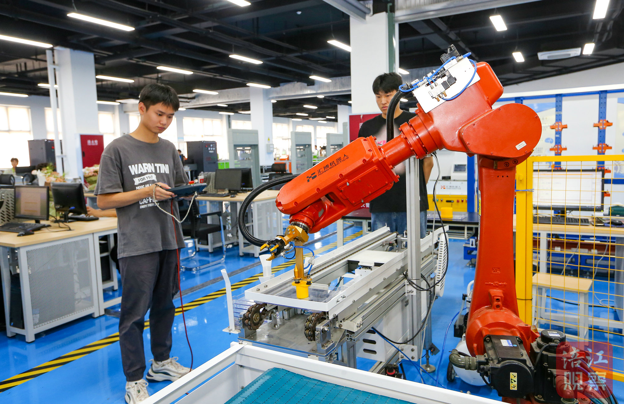 資料圖。綿陽職業(yè)技術(shù)學院學生正在智能制造學院自動化實訓基地實習操作。涪江觀察記者 蒲滔/攝