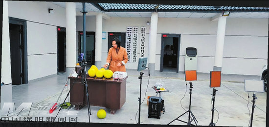 村書記助農(nóng)直播。游仙融媒供圖