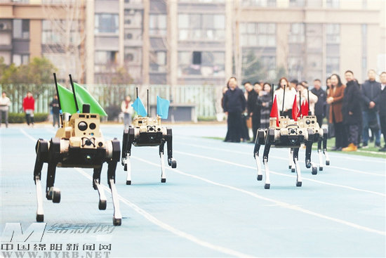 1月23日,中國(guó)(綿陽(yáng))科技城首屆人形機(jī)器人運(yùn)動(dòng)會(huì)上,四足機(jī)器人在比賽。記者 陳冬冬 攝