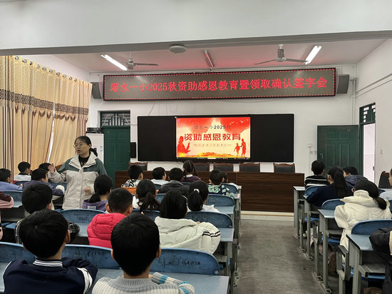 綿陽新聞網(wǎng)訊 為了引導(dǎo)廣大受助學(xué)生常懷感恩之心、立志砥礪前行。近日,安州區(qū)塔水鎮(zhèn)第一小學(xué)開展了2025年秋家庭經(jīng)濟(jì)困難學(xué)生生活補(bǔ)助確認(rèn)簽字暨資助感恩教育活動(dòng)。