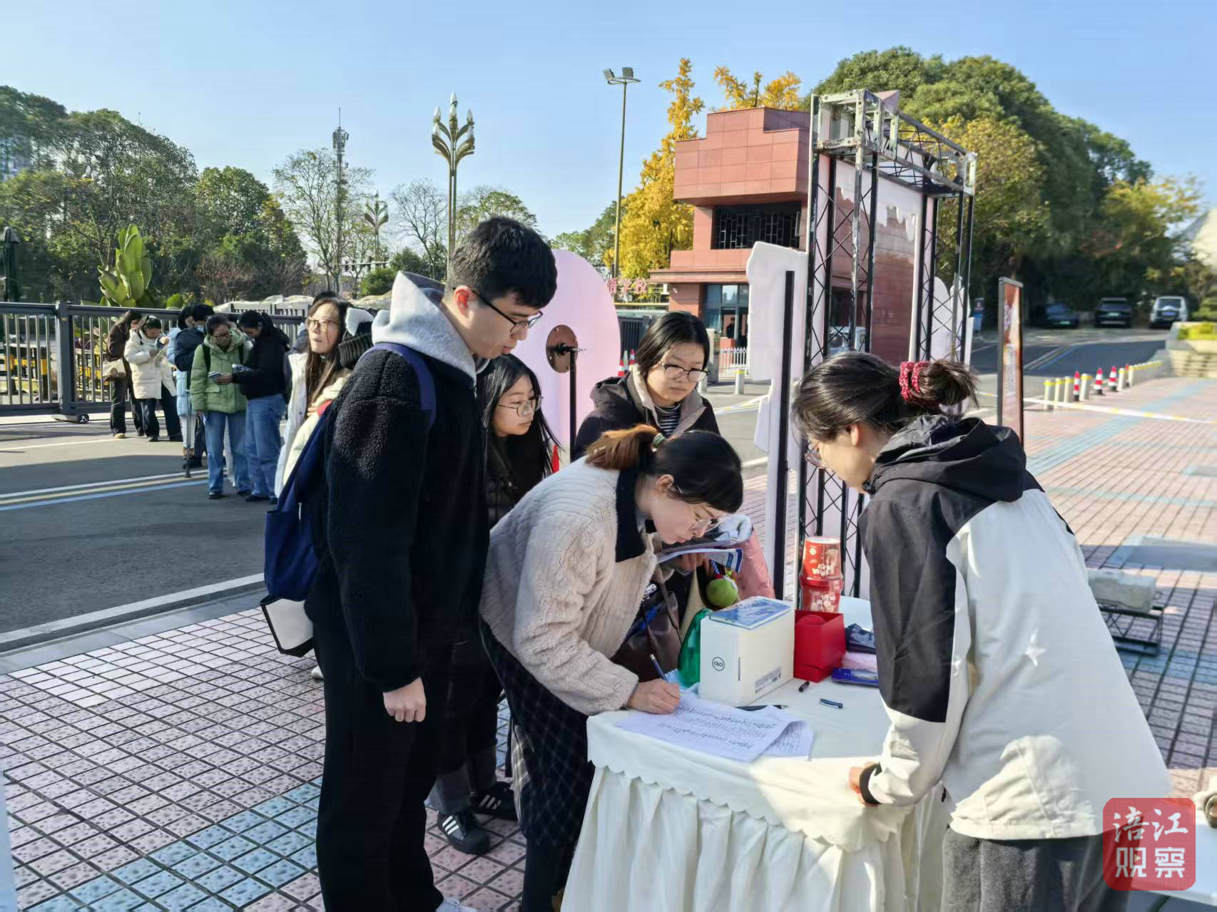 12月7日,四川省2026年度公開考試錄用公務員筆試收官之日,綿陽13個考點外,涪江觀察推廣展位格外熱鬧。