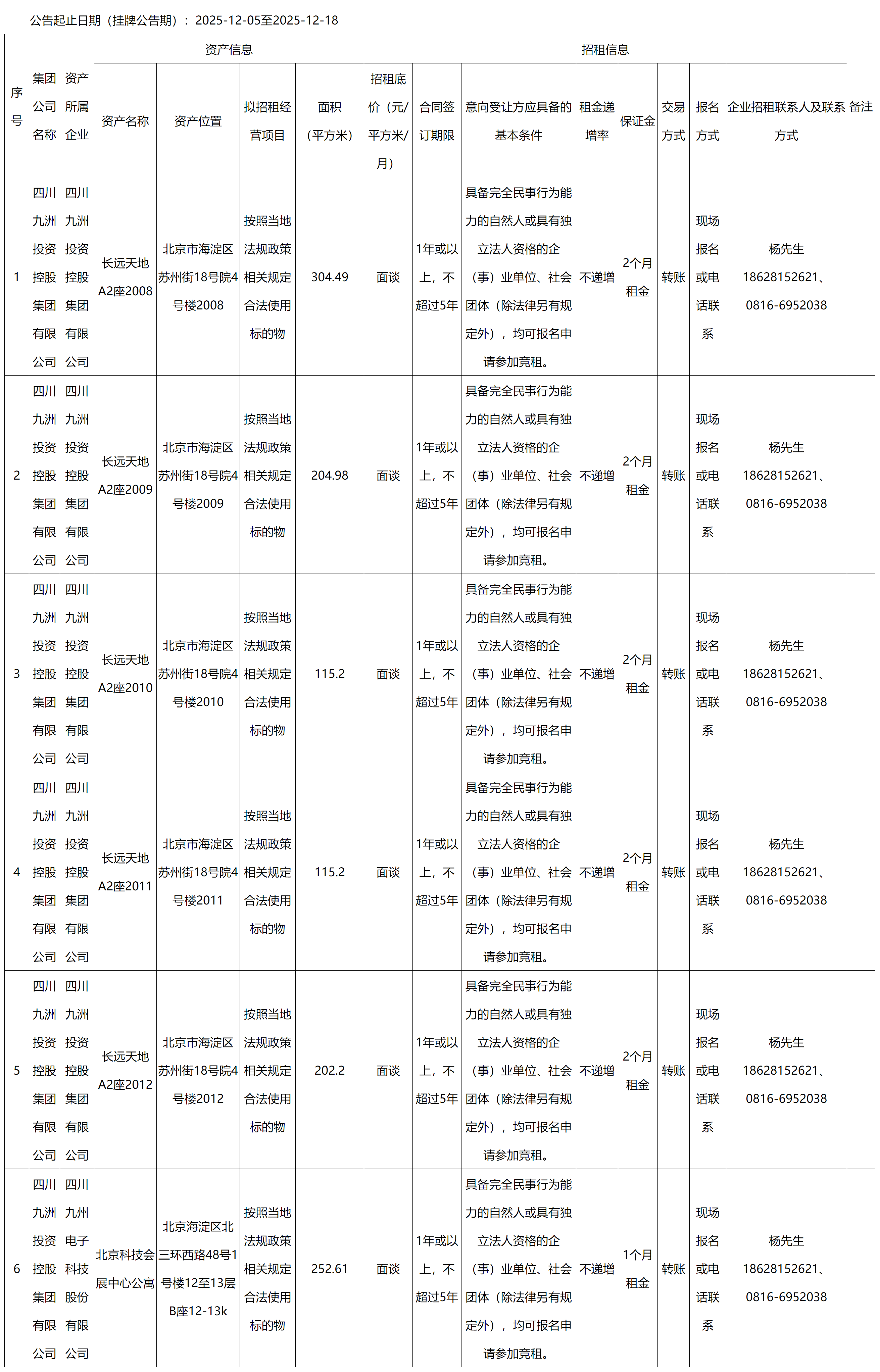 四川九洲千城商業(yè)管理有限公司北京項(xiàng)目部北京長(zhǎng)遠(yuǎn)天地A2座、北京科技會(huì)展中心房屋出租公告