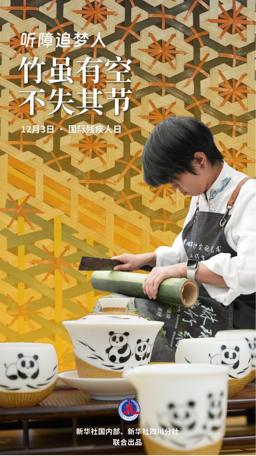 12月3日是國際殘疾人日。這一天,28歲的崇州道明竹編縣級(jí)非遺代表性傳承人劉羅琳,身著一襲馬面裙,登上四川成都主題活動(dòng)舞臺(tái)。聽障一級(jí),卻找到光、傳遞光的她用巧手告訴人們:身體可以不完美,但逐夢不能留遺憾。
