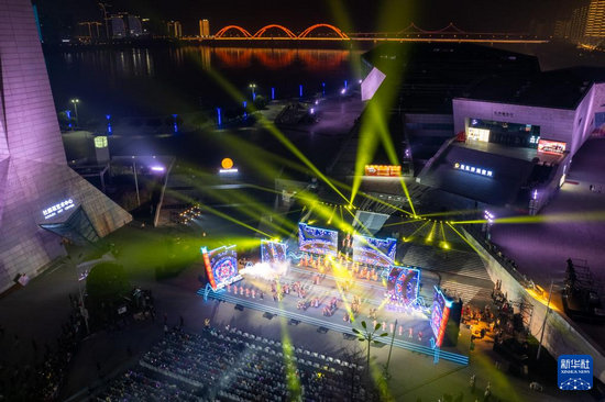 12月9日拍攝的2025年湖南“歡樂瀟湘”優(yōu)秀群眾文藝作品展演活動(dòng)現(xiàn)場(無人機(jī)照片)。