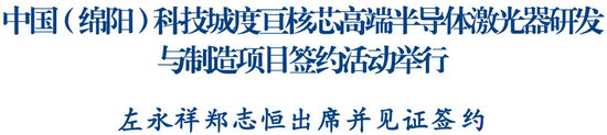 綿陽(yáng)新聞網(wǎng)訊 12月10日,中國(guó)(綿陽(yáng))科技城度亙核芯高端半導(dǎo)體激光器研發(fā)與制造項(xiàng)目簽約活動(dòng)舉行。省委常委、市委書記左永祥,市委常委、科技城管委會(huì)主任鄭志恒出席并見證簽約。