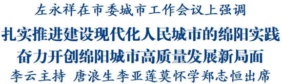 綿陽新聞網(wǎng)訊 12月10日,市委城市工作會議召開,省委常委、市委書記左永祥出席會議并講話。他強(qiáng)調(diào),要深入學(xué)習(xí)貫徹習(xí)近平總書記關(guān)于城市工作的重要論述和對四川工作系列重要指示精神,全面落實(shí)中央、省委城市工作會議部署要求,擔(dān)當(dāng)實(shí)干、開拓創(chuàng)新,大力實(shí)施城市能級提升行動,扎實(shí)推進(jìn)建設(shè)現(xiàn)代化人民城市的綿陽實(shí)踐,奮力開創(chuàng)綿陽城市高質(zhì)量發(fā)展新局面,為高水平建設(shè)中國(綿陽)科技城、加快建成省域經(jīng)濟(jì)副中心提供堅(jiān)實(shí)支撐。
