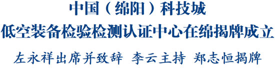 綿陽新聞網訊 12月12日,中國(綿陽)科技城低空裝備檢驗檢測認證中心在綿揭牌成立。省委常委、市委書記左永祥出席并致辭。市委副書記、市長李云主持,市委常委、科技城管委會主任鄭志恒出席并揭牌。