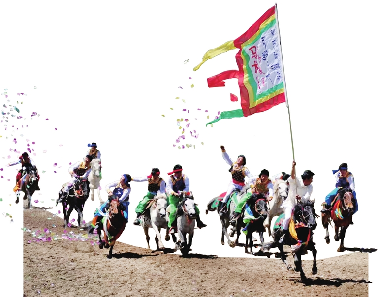 紅原非遺馬術(shù)文旅體驗基地的工作人員在表演馬術(shù)。 記者 鄧勇 攝