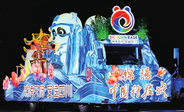 綿陽(yáng)花車亮相第36屆上海旅游節(jié)。