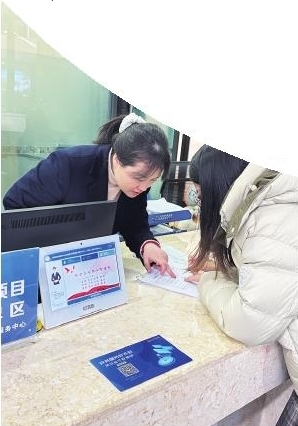 工程建設(shè)窗口工作人員指導(dǎo)經(jīng)辦人員填寫(xiě)表冊(cè)。