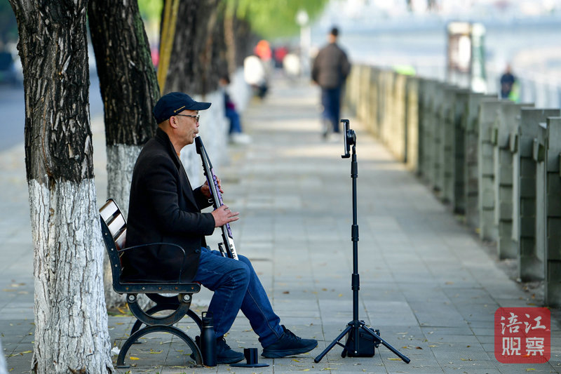 三三兩兩的市民游客,有的悠閑漫步,有的在湖畔獨(dú)奏,為深冬季節(jié)增添了幾分詩意與安寧。