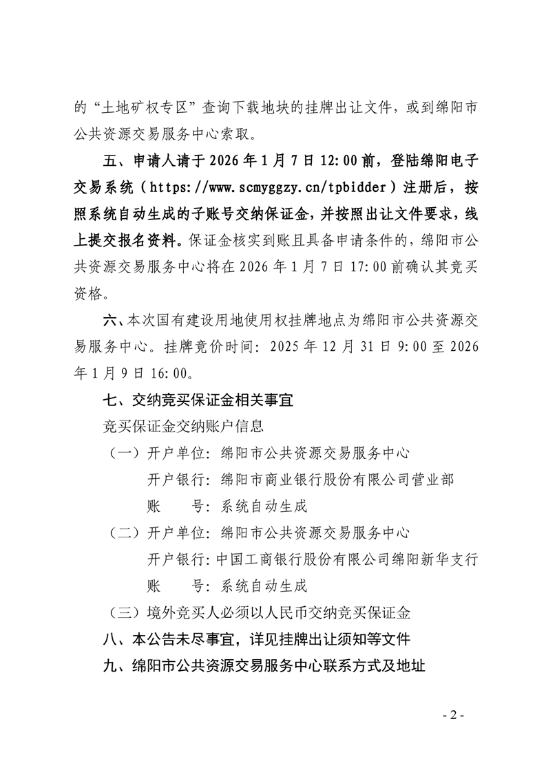 綿陽(yáng)市國(guó)有建設(shè)用地使用權(quán)掛牌出讓公告(綿經(jīng)開(kāi)管公告〔2025〕15號(hào))