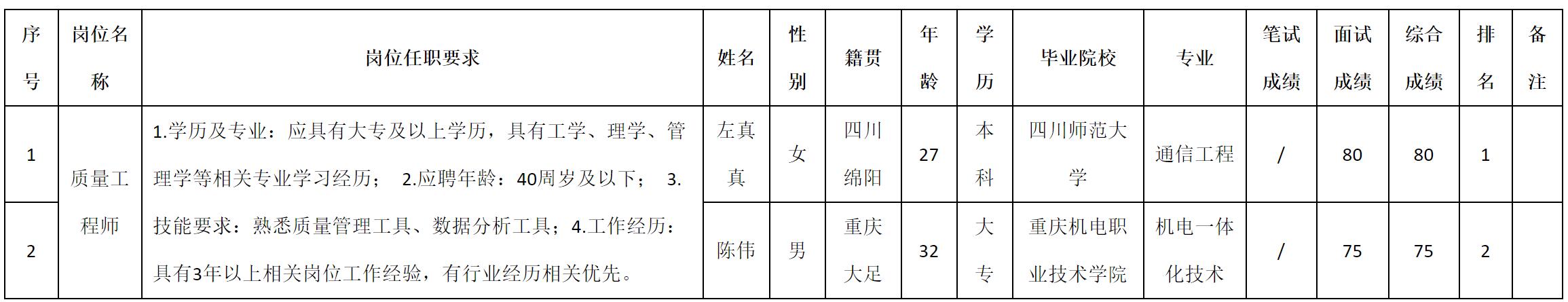 根據(jù)四川九華光子通信技術(shù)有限公司發(fā)布的招聘公告及招聘相關(guān)規(guī)定,現(xiàn)將測試成績予以公示。