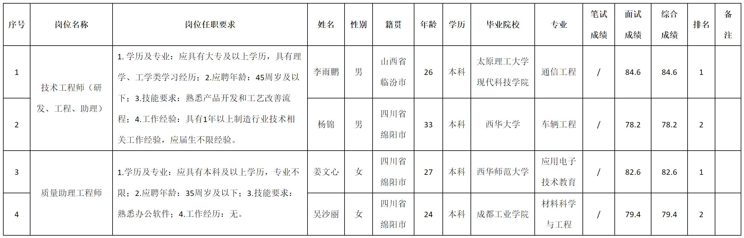 根據(jù)四川九州光電子技術(shù)有限公司發(fā)布的招聘公告及招聘相關(guān)規(guī)定,現(xiàn)將測試成績予以公示。