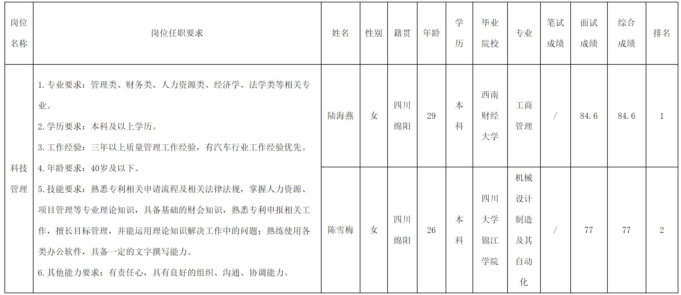 根據(jù)四川愛創(chuàng)科技有限公司發(fā)布的招聘公告及招聘相關(guān)規(guī)定,現(xiàn)將測(cè)試成績(jī)予以公示。