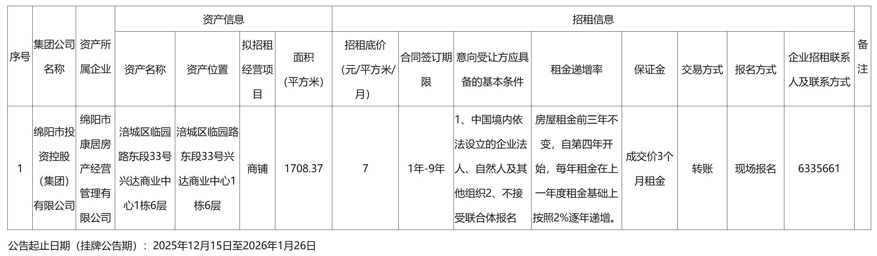 綿陽(yáng)市康居房產(chǎn)經(jīng)營(yíng)管理有限公司資產(chǎn)出租公告