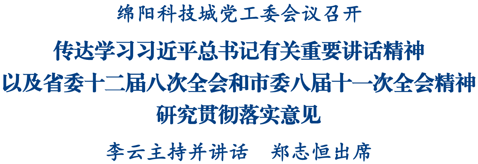 綿陽新聞網(wǎng)訊 12月16日,綿陽科技城召開黨工委會議,傳達學習習近平總書記有關重要講話精神,以及省委十二屆八次全會和市委八屆十一次全會精神,研究科技城貫徹落實意見。市委副書記、市長、科技城黨工委書記李云主持會議并講話。